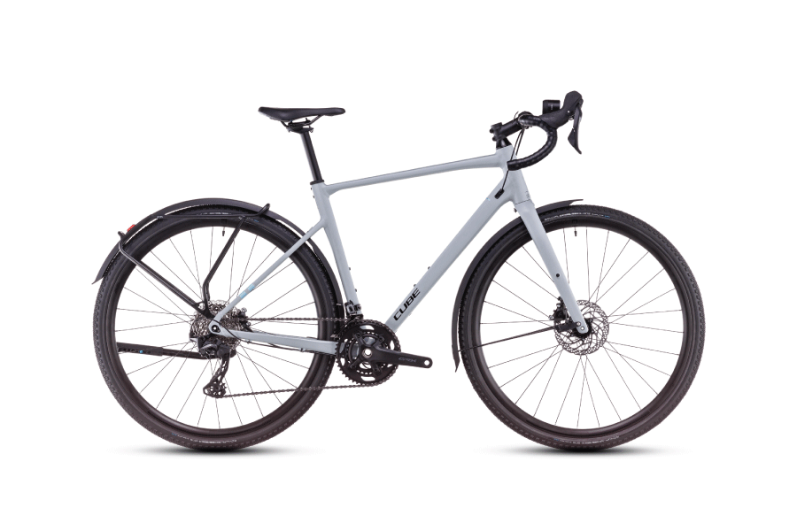 Transmission Shimano GRX 2×11, garde-boue et porte-bagages intégrés : parfait pour les trajets tout temps.