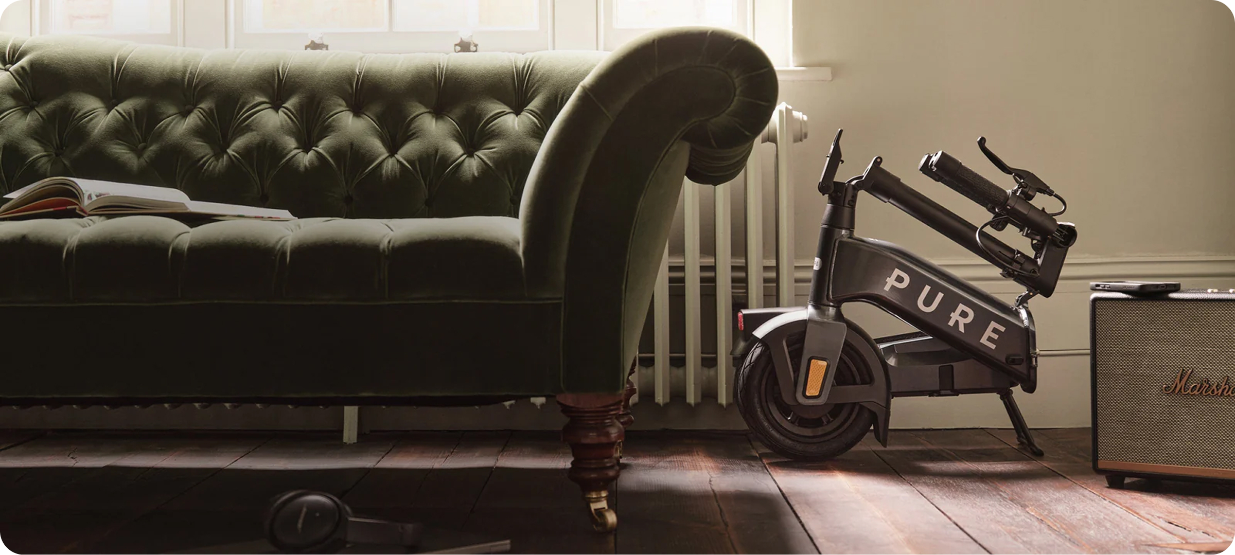 Pour les trajets urbains rapides, la trottinette électrique offre agilité et compacité. Nos modèles haut de gamme de la marque anglaise Pure intègrent des moteurs puissants et des systèmes de pliage innovants.